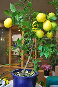 こんばんは。スタッフMです。今日は寒かったですね!グッと秋が深まったようですね。そんな季節ではありますが湯っ蔵んどの館内にはレモンが、お目見え!!!このレモン、野菜売場で売っているものではないんですよ鉢に生っているレモンなんです!レモンて、寒くても大丈夫なんですね?!さわやかな匂い・・・までは感じないのですがかわいらしい姿をご覧に来てくださいね!