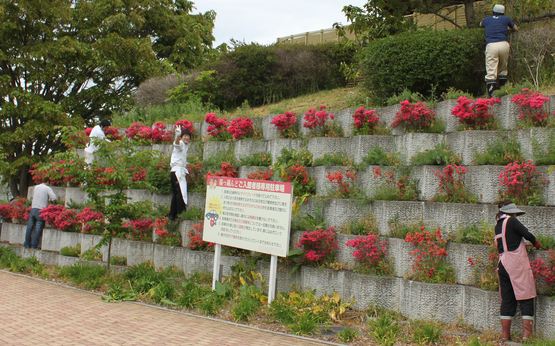 先月、スタッフ総出で草取り=写真左=を