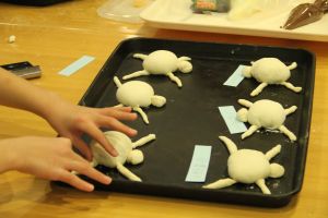 ベーカリーのT内さんが先生になりキャラパンづくり。お子様の作る作品にお母様も興味津々?とても楽しい会になりました。みんな美味しいパンつくれたかな?(^-^