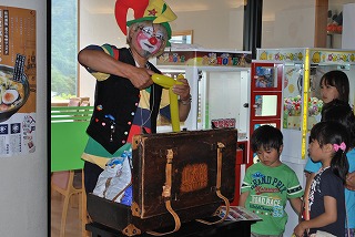 信州須坂蔵の味噌フェスタ好評開催中ですが、本日はイベントも行なわれました。まずは食育イベントとしまて当館管理栄養士K條を講師とし、お味噌のお話しや紙芝居をし、お味噌に興味をもってもらいおみそ汁を作ったり、ピエロの山太朗さんが来館しペンシルバルーンでいろいろなものを作ってくれたりと楽しい1日をお過ごしいただけたのではないでしょうか。信州蔵の味噌フェスタも残すところあと1週間となりました。期間限定メニューも沢山ございますのでぜひお試しくださいませ♪