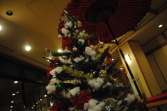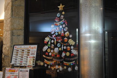宴会場にクリスマスツリーを飾りました。 宴会のクリスマスツリーには雪をイメージ
