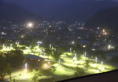 昨夜の当館展望室からのマレットゴルフ場=写真下
