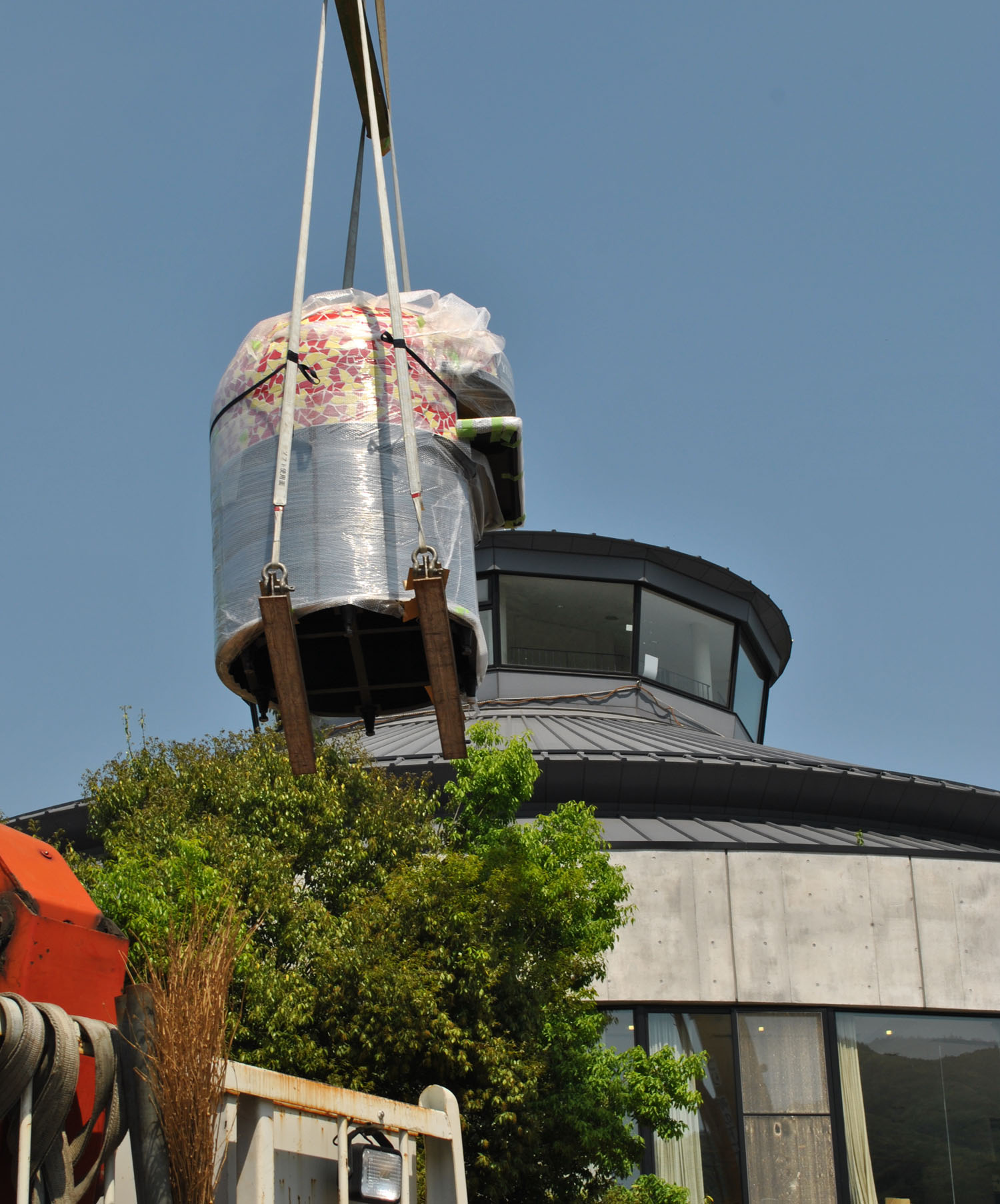 クレーンで持ち上げられる巨大モンスター!?Σ(・ω・ノ)ノ!