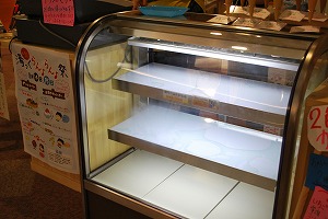 H支配人が、はりきって大きな陳列棚を運んでおりました。
