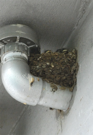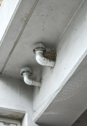 それは、管理室側の配管が露出しているところの、つばめの巣です。
