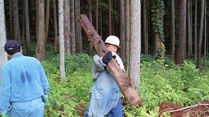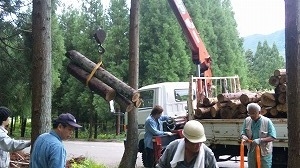 実はこの丸太、山の方でスタッフ達が地元の業者様と