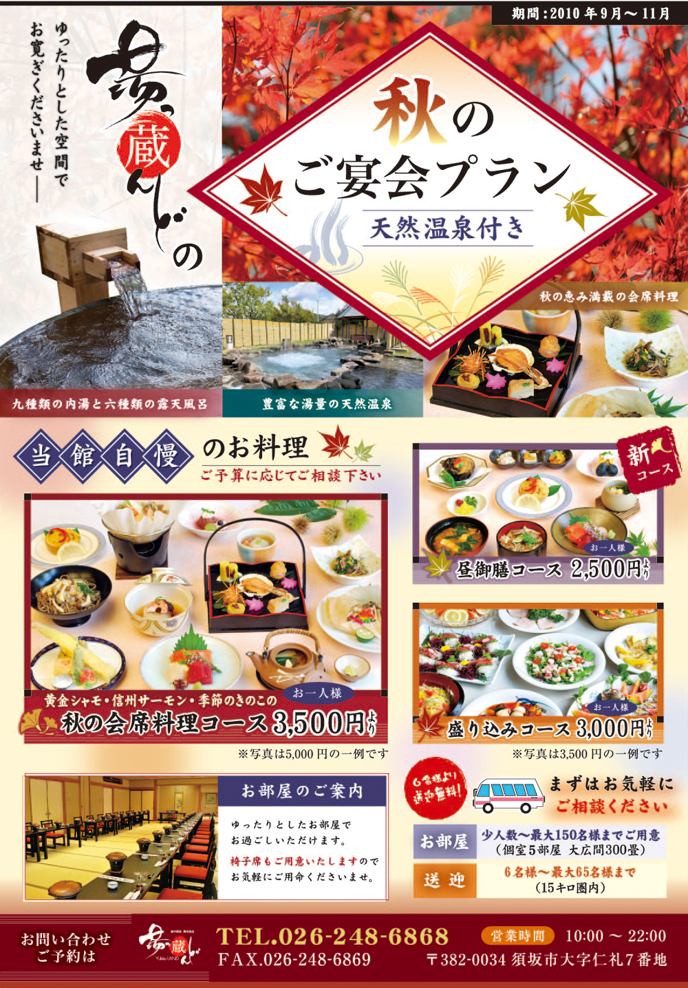 朝晩は少しは涼しくなったかなぁ...と、最近思い始めたました。さて、当館宴会プランも今月から秋のプランが始まりました。
