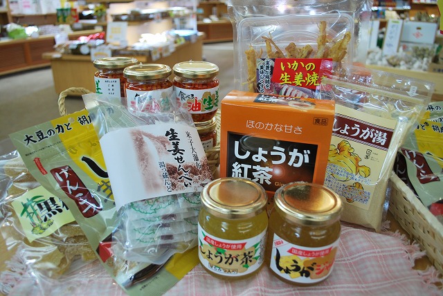 生姜の商品をピックアップしたコーナーが