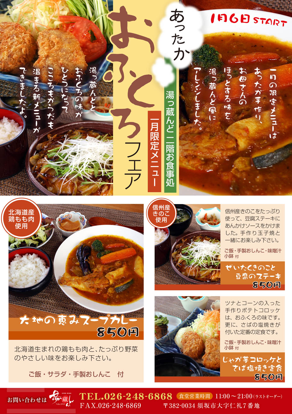 こんにちは、湯っ蔵んど2階の食堂では6日より