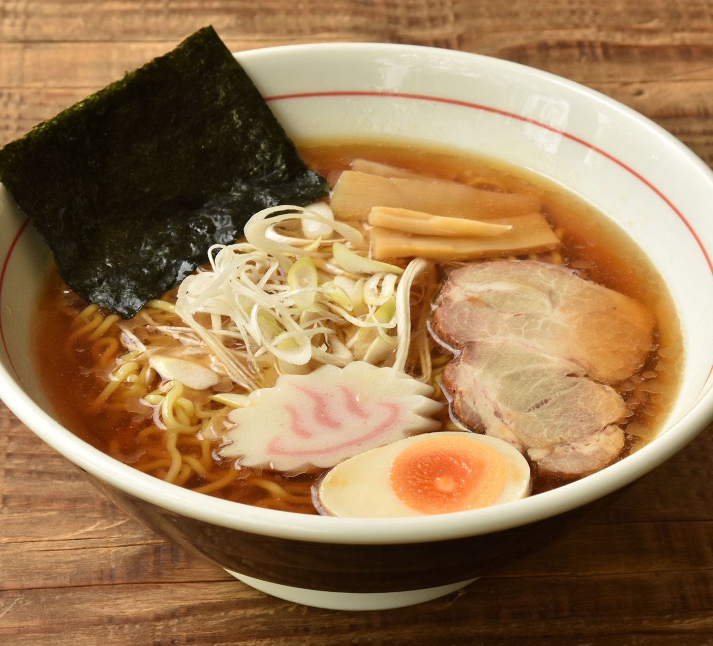 自家製チャーシューと青山玉子、糀屋本藤醸造舗の醤油を使用した特製醤油ラーメンです。