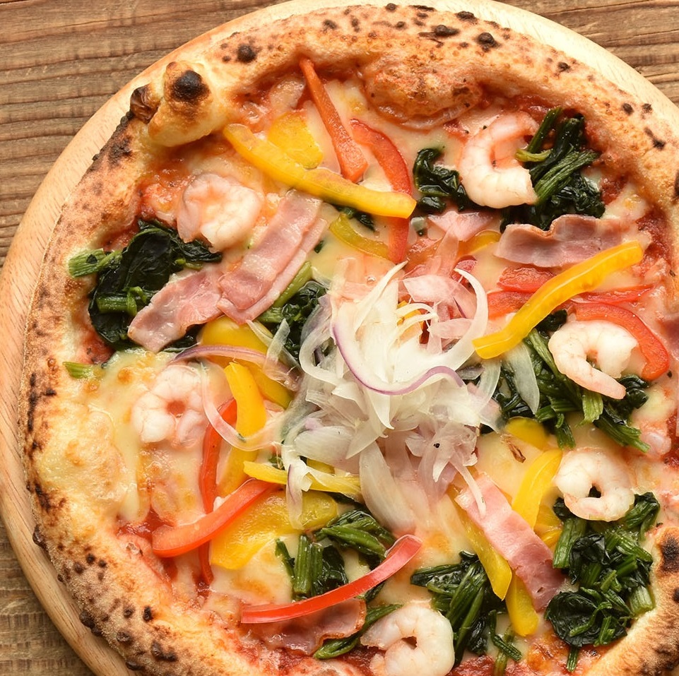 見た目も豪華な具沢山ピッツァです。