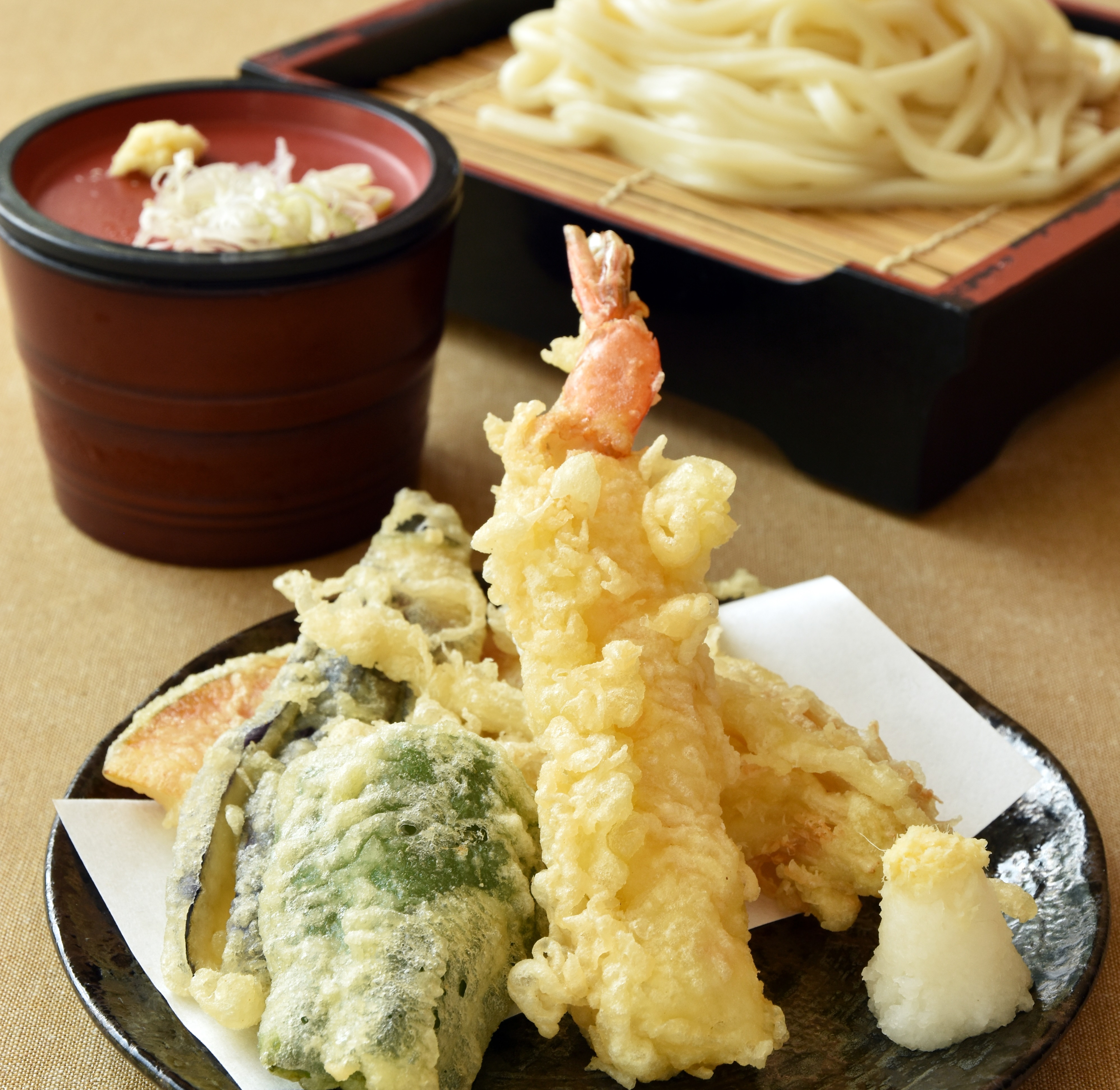 海老と野菜のサクサク天ぷらはうどんとも相性抜群です。