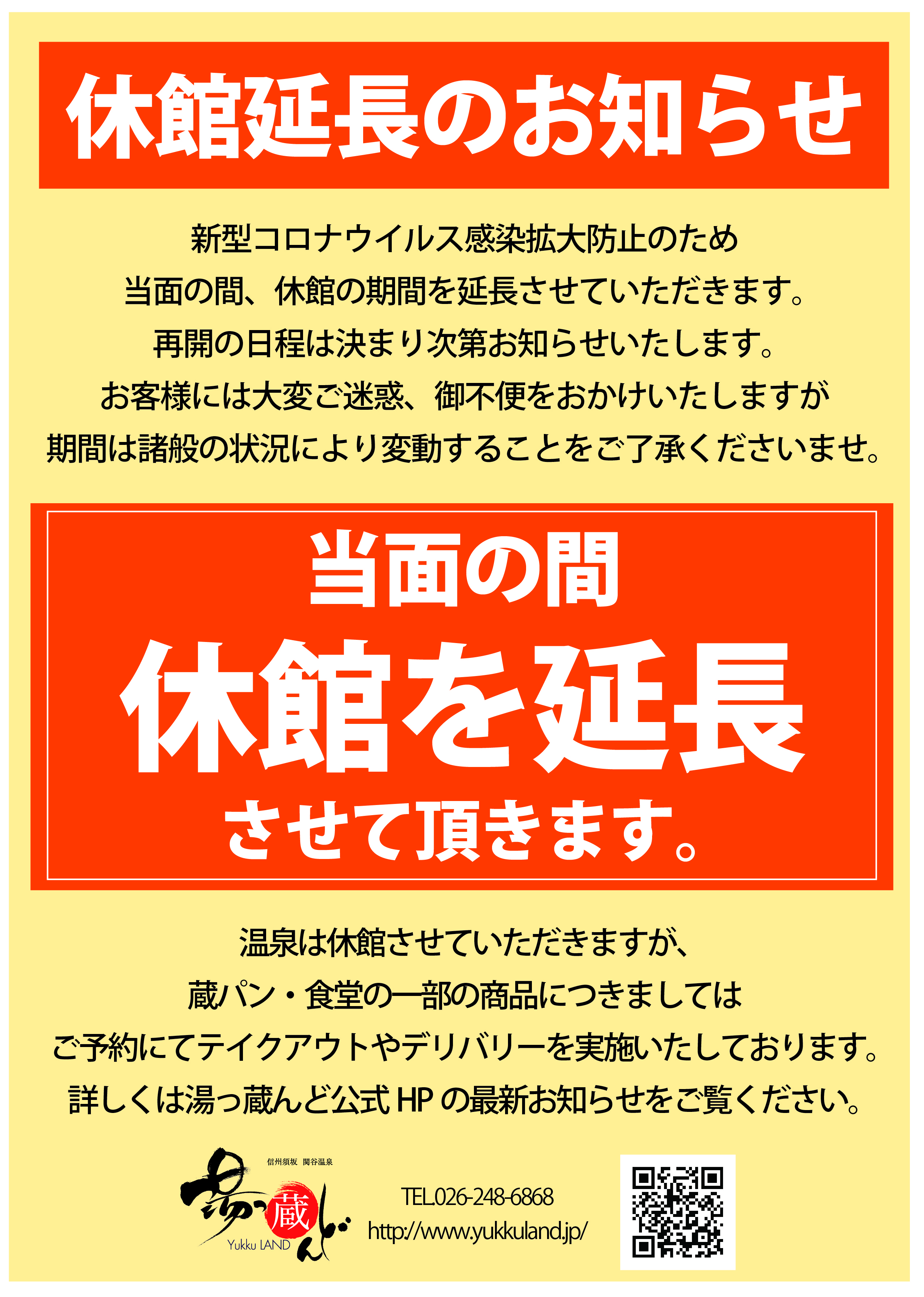 営業再開等今後の予定につきましては、変更が有り次第ホームページ等でお知らせいたします。