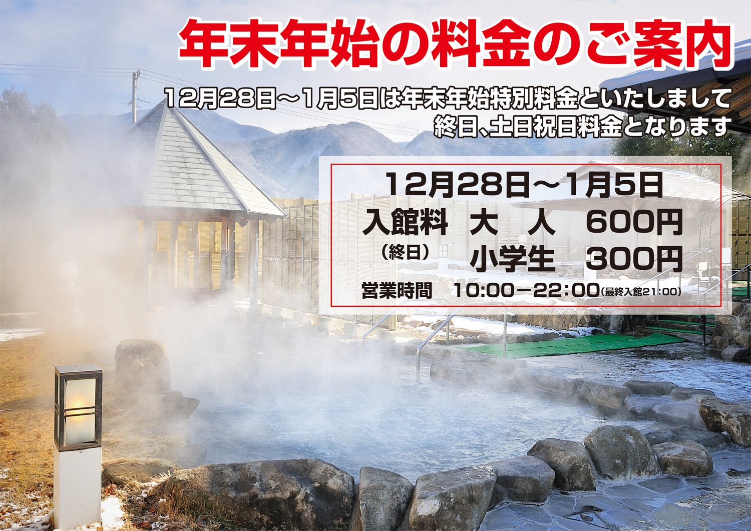 足湯『ひざっこ』は冬期間、凍結防止のためお休みいたします。 お客様にはご迷惑をおかけいたしますが、ご了承下さいませ。また、春からのご利用をお楽しみにください。