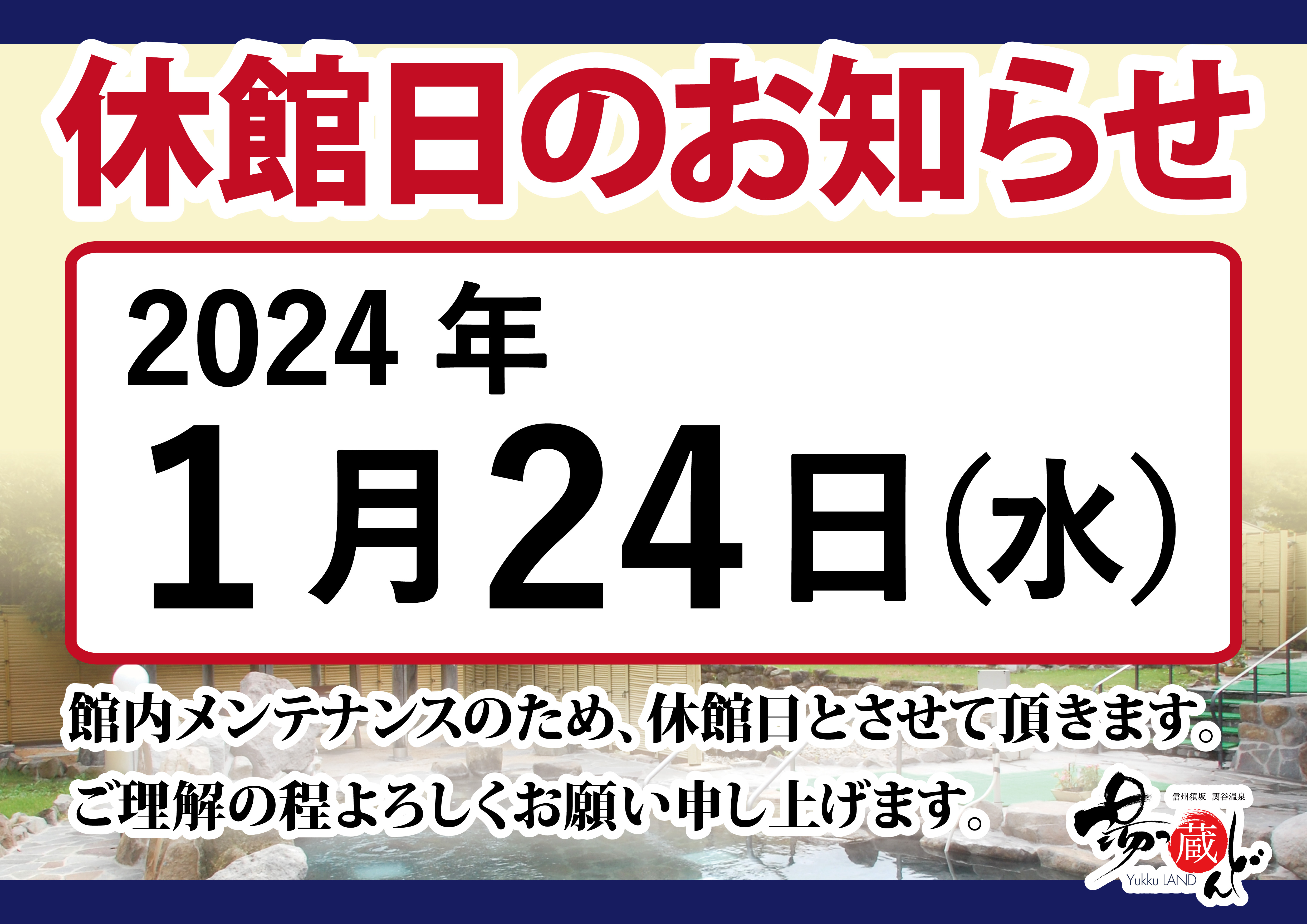 2024年1月24日(水)は、館内メンテナンスのため休館日とさせていただきます。