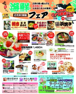 湯っ蔵んどでは海鮮フェア・北海道フェアがスタート致しました。