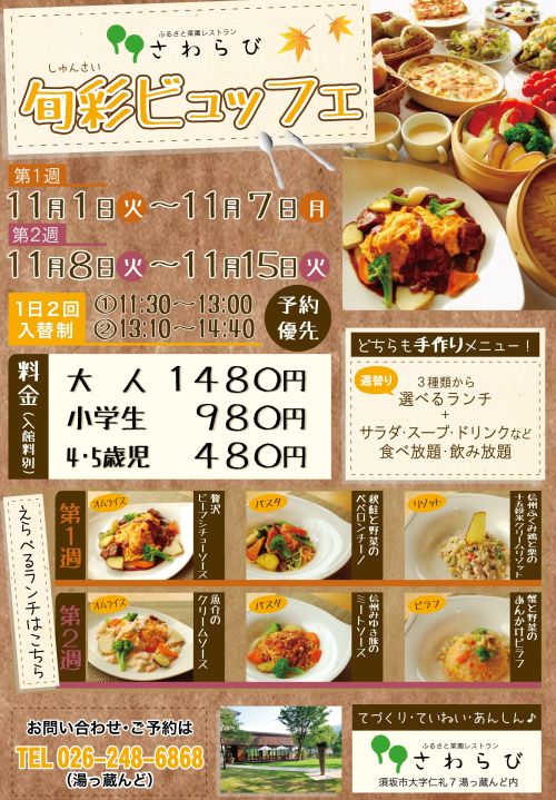 026-248-8733(さわらび) または 026-248-6868(湯っ蔵んど代表)