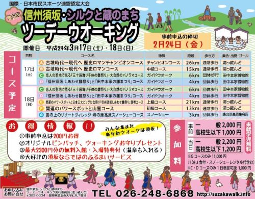 第6回信州須坂・シルクと蔵のまちツーデーウオーキングホームページをご覧ください。