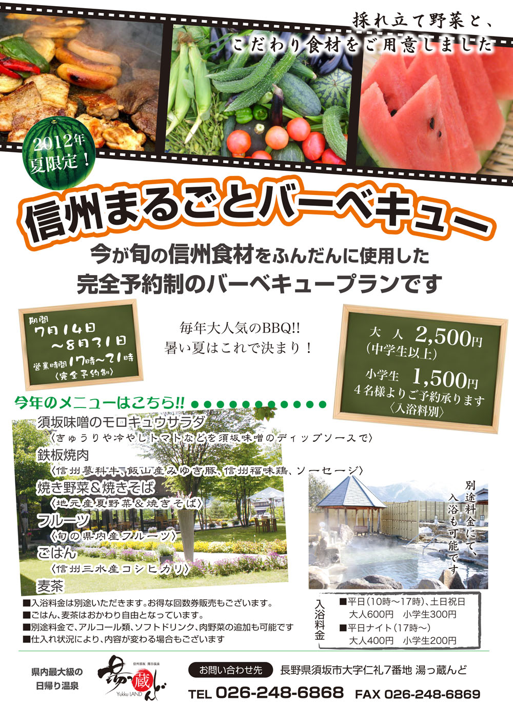 昨年大好評だったバーベキューが7月14日からスタートします!! 予約も受付中です。