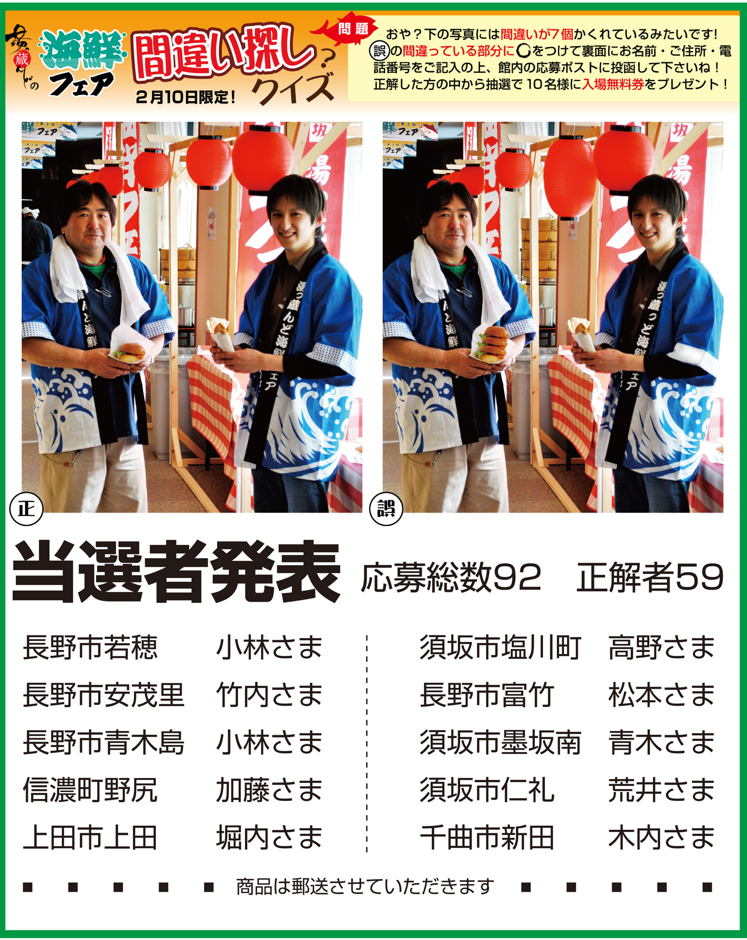 2月10日に開催した間違い探しクイズ。 多数のご参加ありがとうございました(^人^)