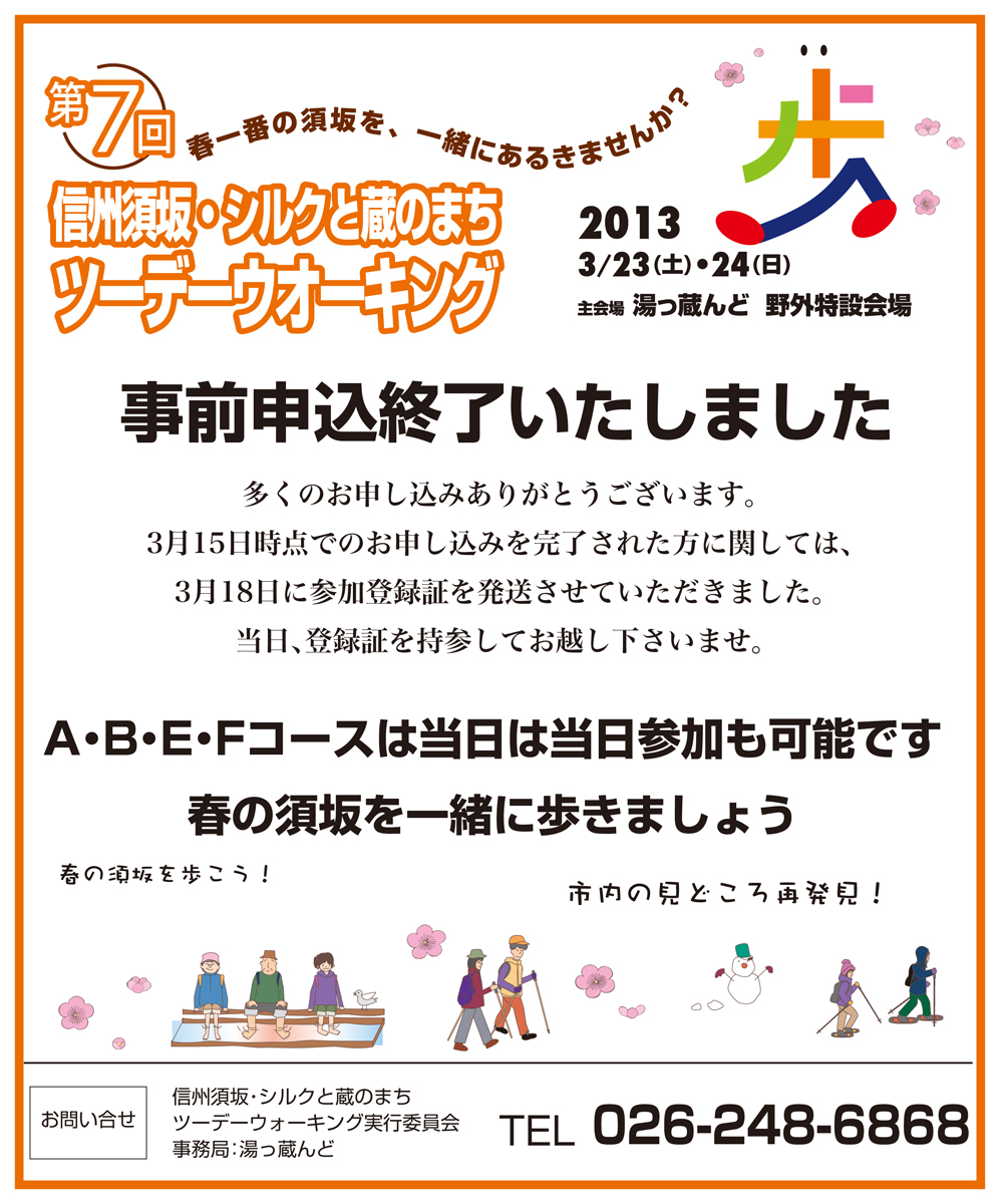信州須坂シルクと蔵のまちツーデーウオーキング事前申込終了 [