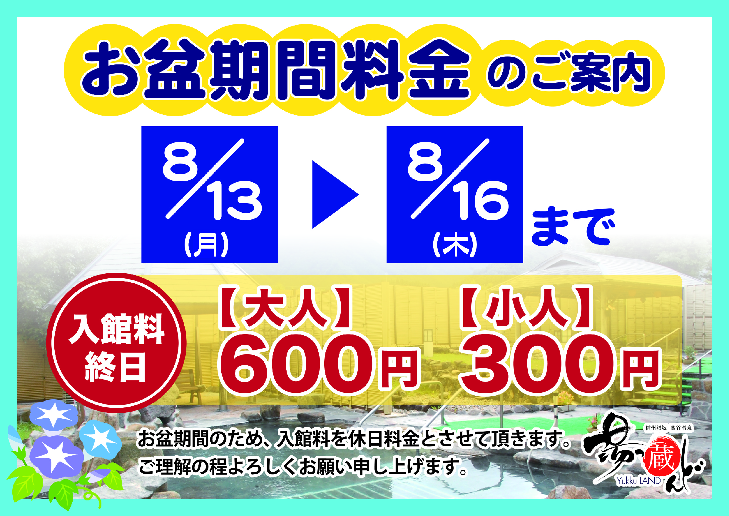 湯っ蔵んどをご利用いただき、誠にありがとうございます。