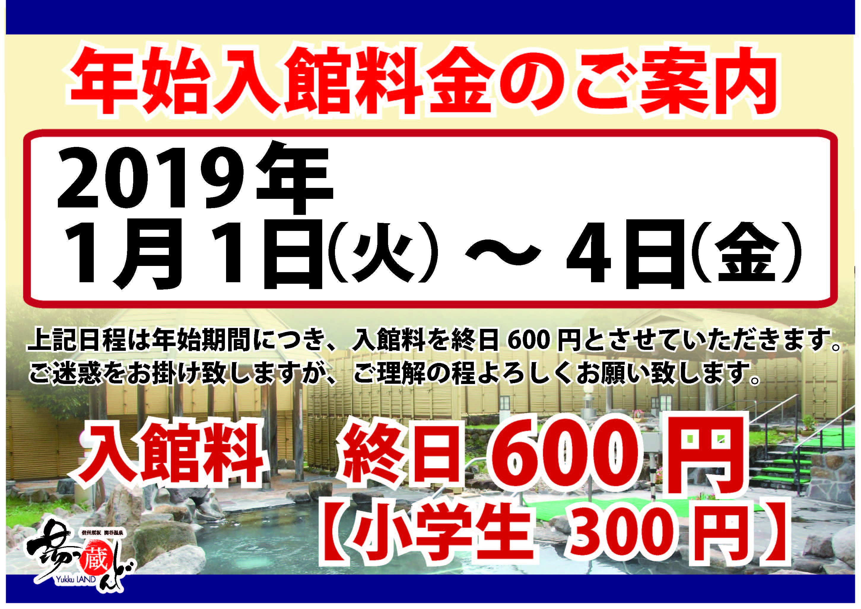 2019年1月1日(火)~4日(金)は、終日休日料金とさせて頂きます。