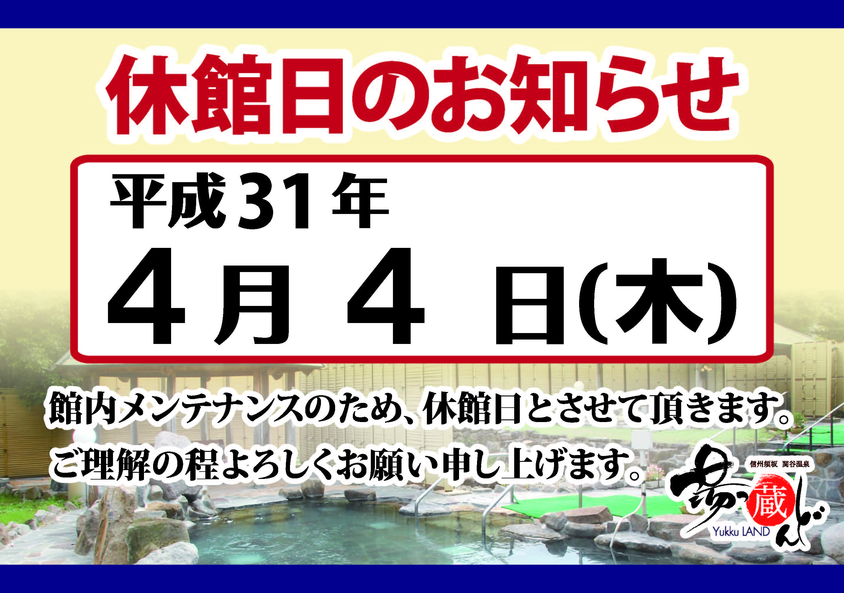 2019年4月4日(木)は、館内メンテナンスのため休館日とさせていただきます。