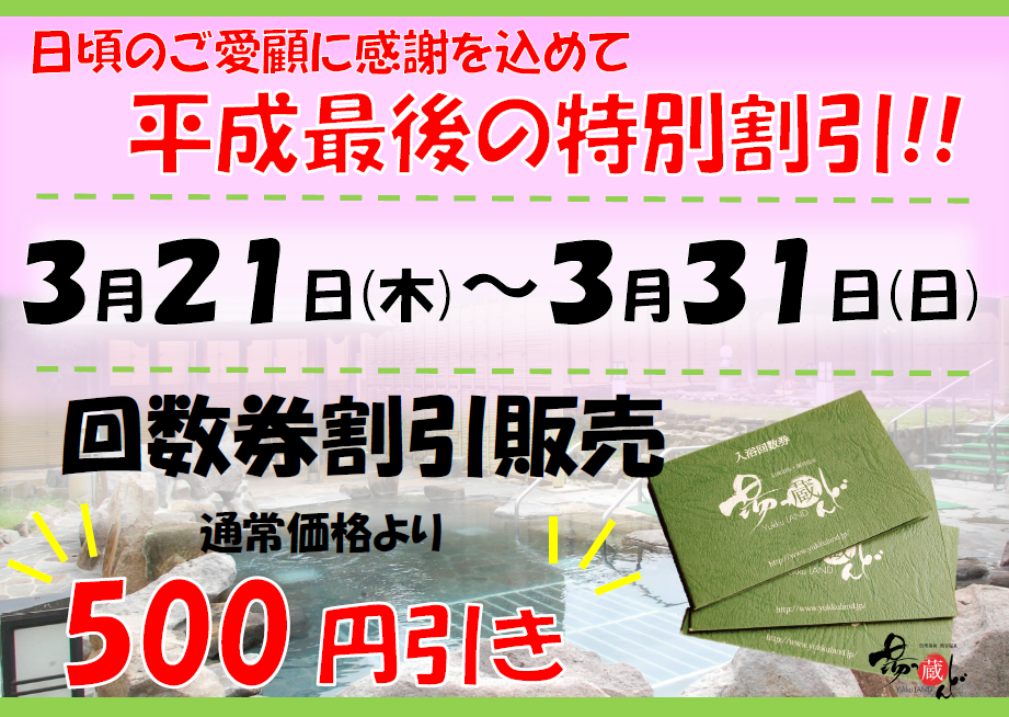 皆さまへの感謝を込めて3月21日(木)~31日(日)に、回数券割引販売を行います。