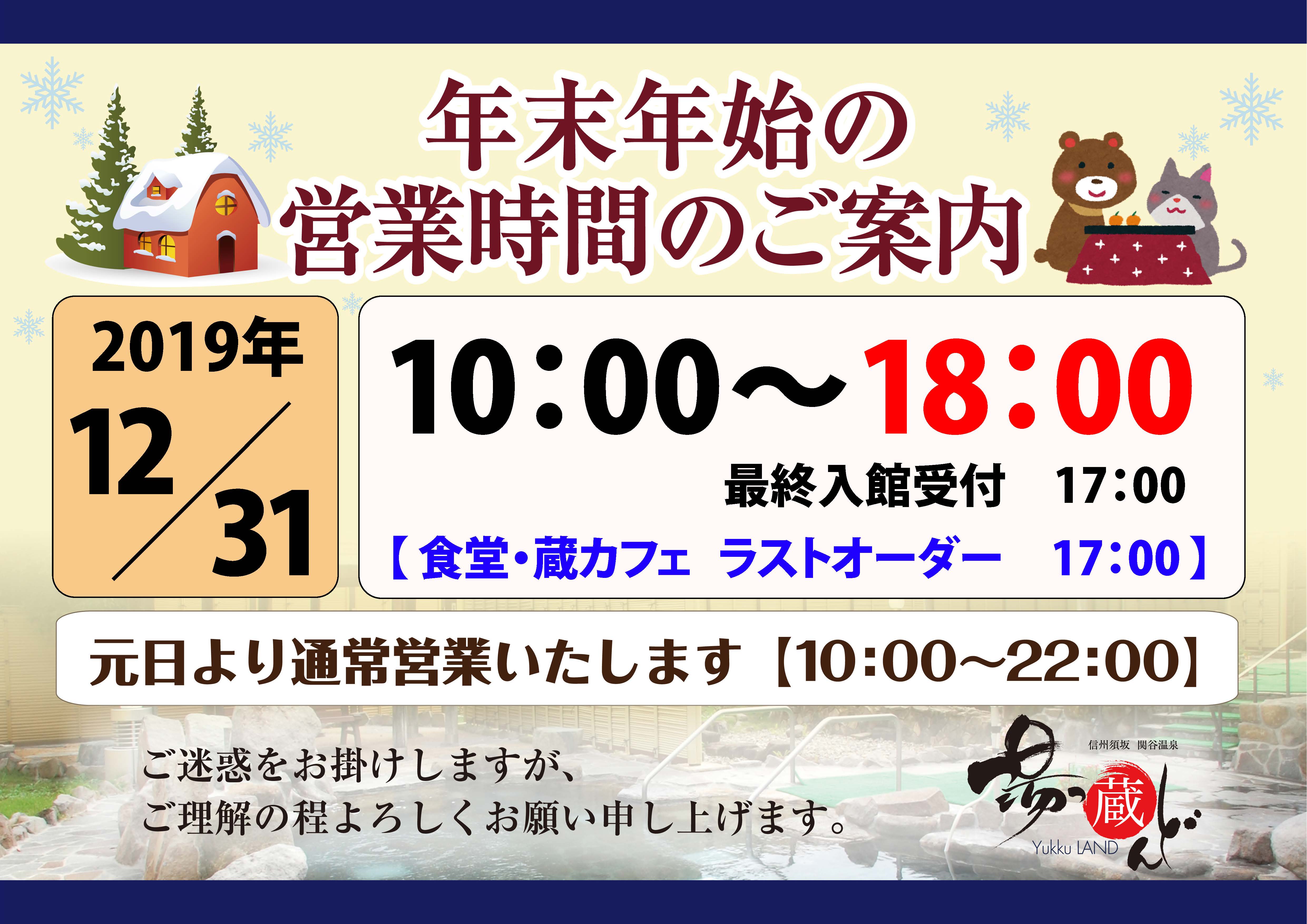 2019年12月31日(火)は 閉館時間を18:00とさせていただきます。