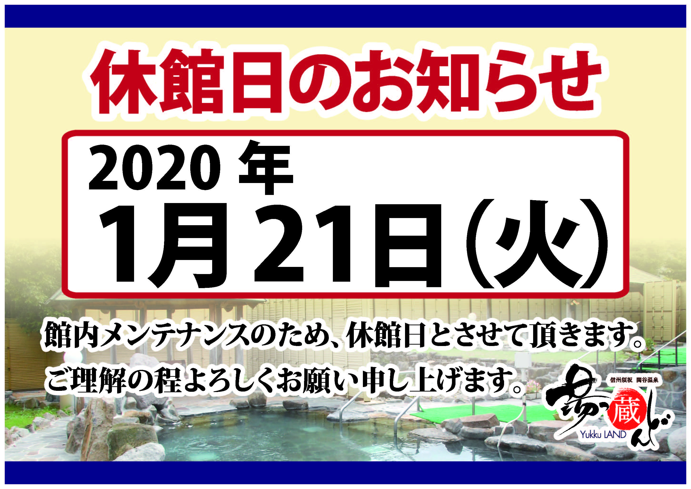 2020年1月21日(火)は、館内メンテナンスのため休館日とさせていただきます。