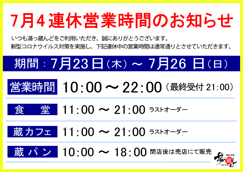 平素より、湯っ蔵んどをご利用頂き誠にありがとうございます。